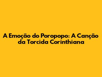 A Emoção Do 'Poropopo': A Canção Da Torcida Corinthiana